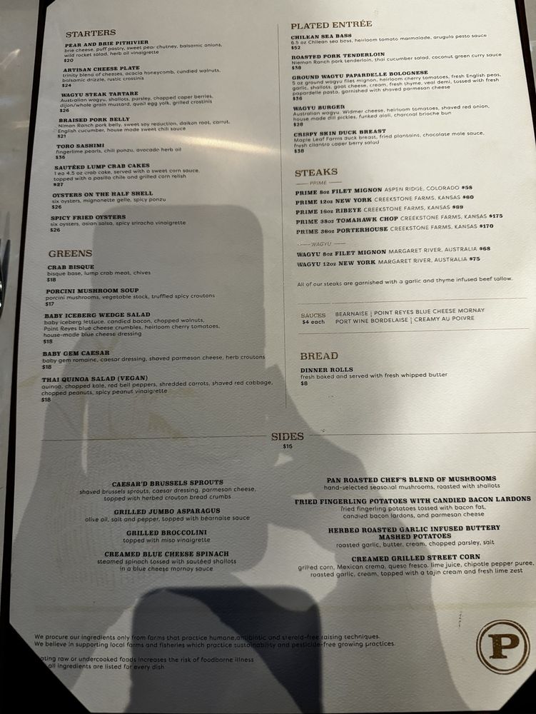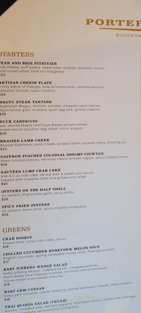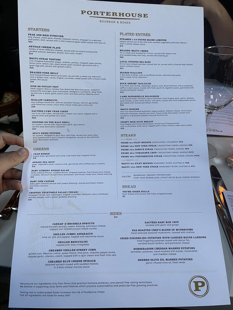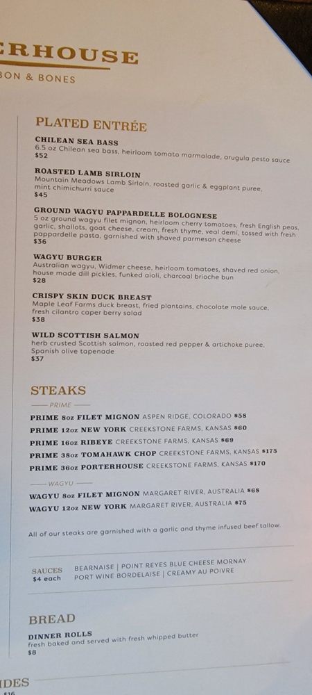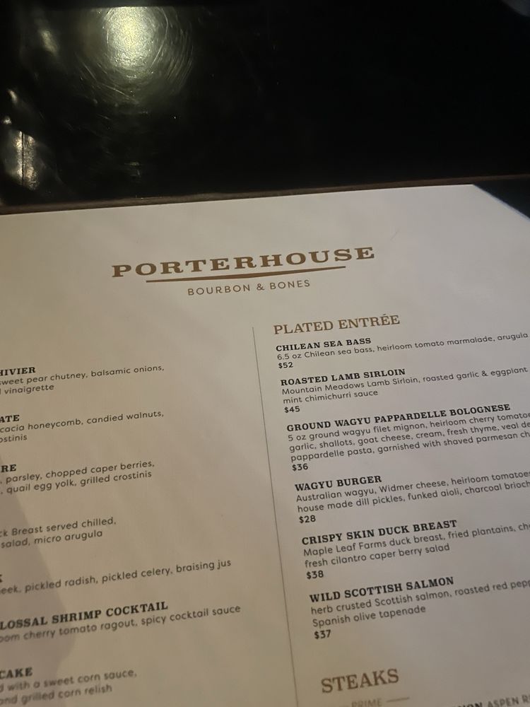 Porterhouse Bourbon & Bones is a cocktail bar and steakhouse located in El Segundo, CA, known for its upscale yet casual ambiance and attentive service. The menu offers a variety of options, including seafood dishes for pescatarians. Customers praise the flavorful crab cakes, perfectly cooked steaks like the Wagyu New York strip, and delicious sides like fingerling potatoes and herb garlic mashed potatoes. The restaurant also boasts an impressive selection of spirits and wines. While some reviewers noted minor issues such as the lack of complimentary bread and high corkage fees, overall, patrons have had positive dining experiences and express excitement to return. Don't miss out on the delectable offerings at Porterhouse Bourbon & Bones for an unforgettable dining experience.